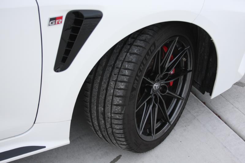 MECHANICAL & PERFORMANCE - 1.6L 3-Cylinder Turbo - 300 Horsepower, 273 lb-ft of Torque - 6 Speed Manual Transmission (iMT) - GR-FOUR All-Wheel Drive System - Suspension; MacPherson-Type Front Struts Double Wishbone-Type Multilink Rear - 18-in Gloss-Black 10-Spoke Forged Wheels - 235/40R18 Michelin Pilot Sport 4 tires - 14-in 4-Piston Vent. Front Disc Brakes - 11.7-in 2-Piston Vent. Rear Disc Brakes - Front & Rear Torsen Limited Slip Differentials (LSD) with Red Calipers