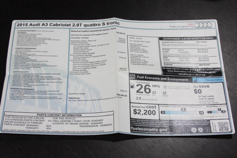 Vehicle Inquiry for 2015 Audi A3 2.0T Premium Plus Cabriolet quattro S tronic
