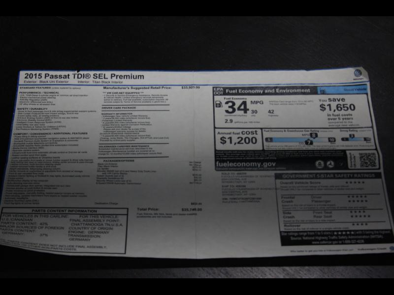 Vehicle Inquiry for 2015 Volkswagen Passat TDI SEL Premium 6A